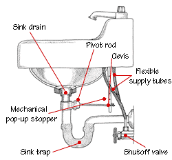 Diagrams and helpful advice on how kitchen and bathroom sink and drain plumbing works.